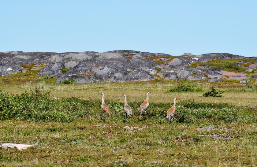 Hier um die Hudson Bay geht die Waldtundra in die Tundra über. Während es bei Miss Piggy ja noch einige Bäume gab, haben hier, nur einige Kilometer weiter, Moose, Flechten und Gräser das Sagen. Und Felsen. Davon gibt es wirklich jede Menge und manche zeigen sich ganz schön farbenfroh.