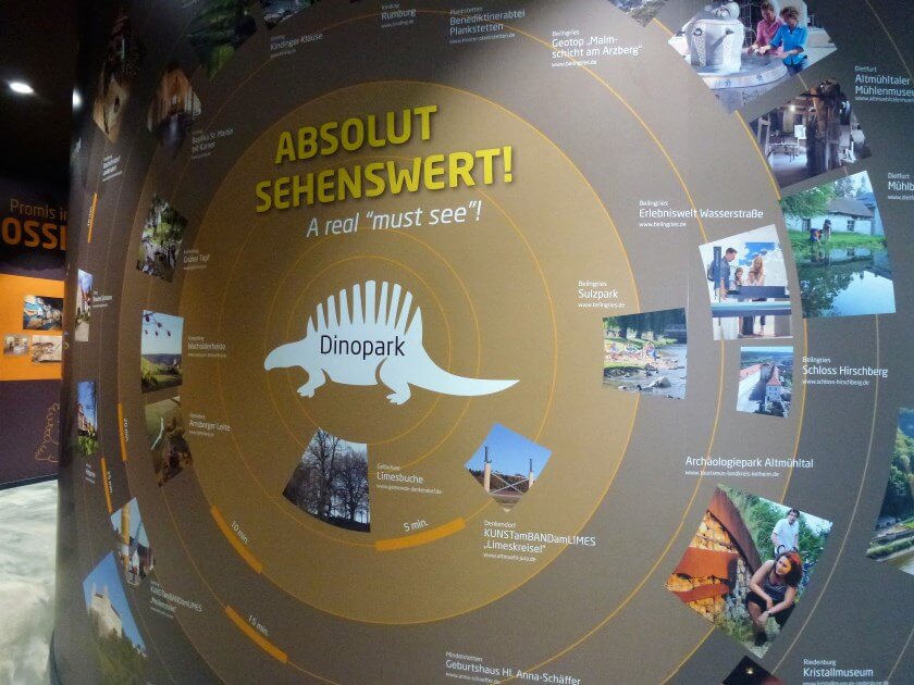 Warum es nun gerade hier ein Dino-Museum gibt, hat natürlich seinen Grund, erklärt uns Spindler: Das fränkische Altmühltal ist ein Fossilien-Eldorado. Im Jura, vor rund 150 Millionen Jahren, lag diese Region mitten in einer subtropischen Insel- und Lagunenlandschaft. Ammoniten, Raubfische und Krokodile bevölkerten das Wasser, Dinosaurier beherrschten das Land, Flugsaurier den Himmel. Mit ein bisschen Fantasie kann ich mir das lebhaft vorstellen.