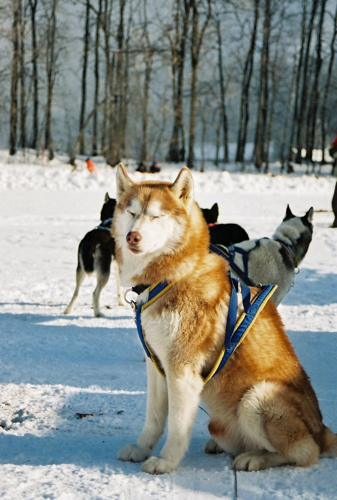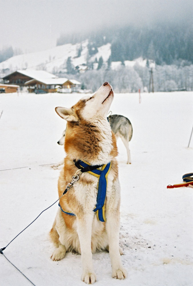 Einige der Schlittenhunde auf den Fotos sind einem traurigen Schicksal entkommen: sie wurden als Einzelhunde in Wohnungen gehalten. Als die Besitzer nicht mehr mit ihnen klarkamen, mussten sie weg. Sie hatten Glück mit ihrem neuen Zuhause, denn nun können sie in den österreichischen Alpen ihre Natur voll ausleben und rennen. Meistens jedenfalls. Manchmal werden nämlich andere vor den Schlitten gespannt, dann macht man als enttäuschter Husky so ein Gesicht wie mein Charakterkopf der Woche.