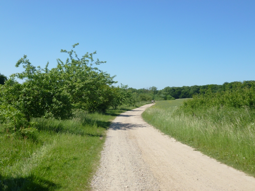 Außer mir ist niemand zu sehen. Ab und zu kommen mal Radfahrer vorbei. Ich grüße freundlich, die meisten grüßen freundlich zurück, aber komisch gucken tun sie eigentlich alle. Als Wanderin ist man hier eine ziemlich exotische Gestalt. Während meiner gesamten Tour bin ich nur zwei Pärchen begegnet, die auch zu Fuß unterwegs waren.